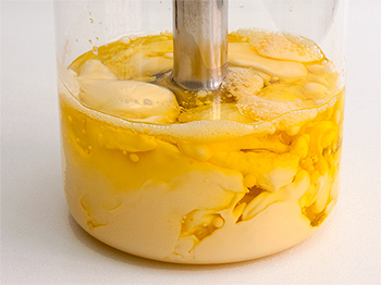 Es importante no mover ni levantar la batidora hasta que la salsa haya emulsionado, al menos durante los primeros 25 o 30 segundos.