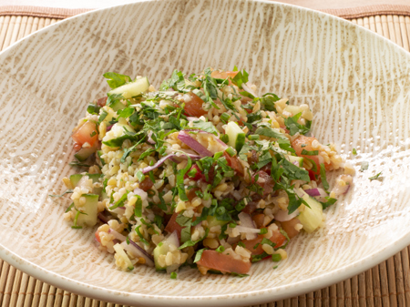 El tabulé es una ensalada típica de la cocina libanesa y siria, que se elabora con bulgur, tomate, cebolla y hierbas aromáticas.