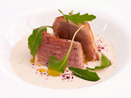 En esta receta el bonito se sirve prácticamente crudo, solo cocinaremos ligeramente la superficie. Cuando se ingiere pescado crudo, se corre el riesgo de contraer una infección por anisakis, un parásito que puede ocasionar enfermedades graves. La única forma de evitar problemas es congelarlo entre 48 y 72 horas, o una semana si queremos estar completamente seguros.