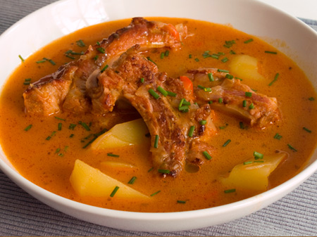 Las costillas tienen bastante grasa, por lo que es recomendable desgrasar el guiso para que no resulte muy pesado. Afortunadamente la grasa flota en el caldo y se distingue muy bien, la podremos retirar fácilmente con una cuchara.