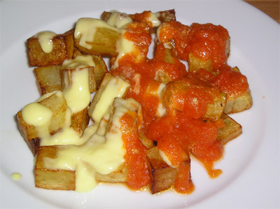 Sacamos las patatas de la sartén, las escurrimos bien y las reservamos.