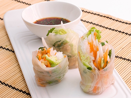 Rollitos de langostinos con papel de arroz